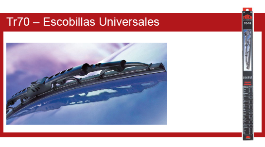 . Escobillas Equipo Universales para vehículos y utilitarios que cubren con las condiciones de las terminales automotrices.